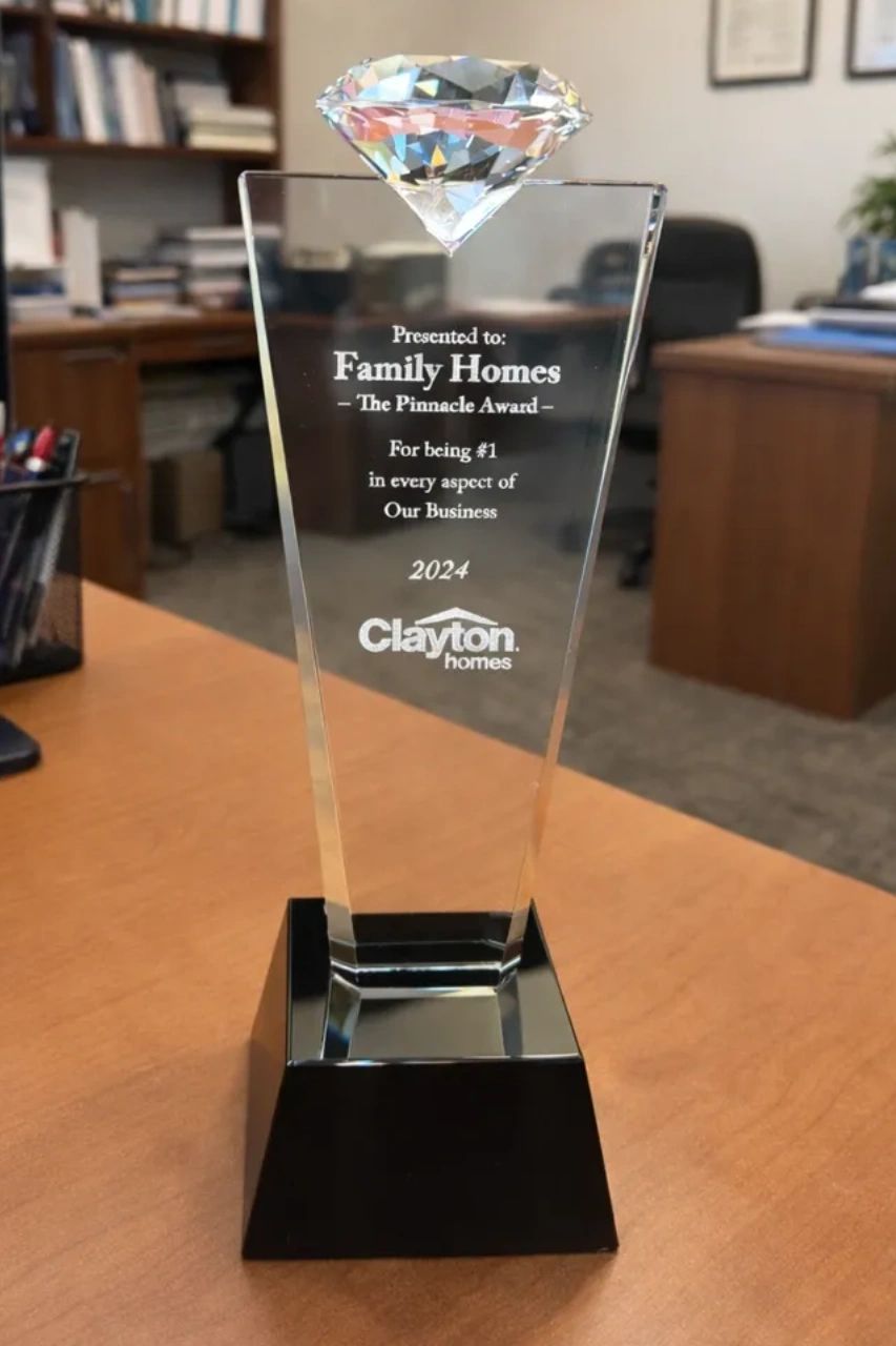 Family Homes was honored with the 2024 Pinnacle Award by Clayton Homes for being #1 in every aspect of our business.